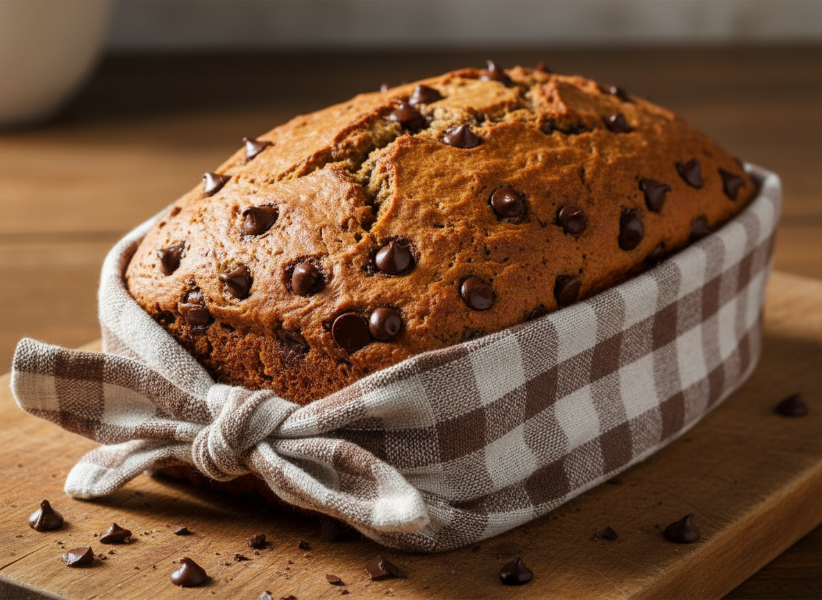 The Muddy Monkey loaf is a full-size sourdough banana bread generously loaded with chocolate chips for a decadent, moist crumb.